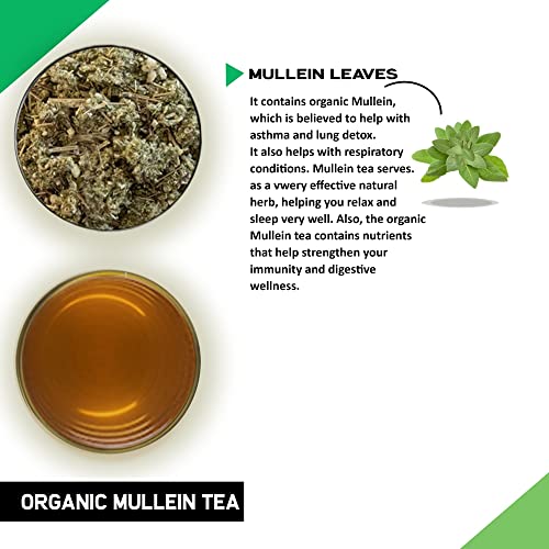 Organic Mullein Tea (50 Cups, 100 Grams) - With Infuser - Helps in Lung Detox and skin problems | Organic Mullein Leaf Tea, All Natural