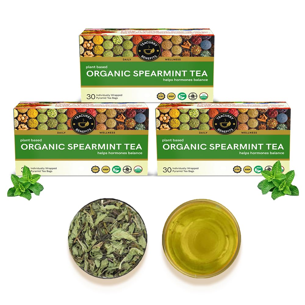 TEACURRY Organic Spearmint Herbal Tea (90 Tea Bag - Pack of 3) - Hormonal Imbalance Facial Hair & Acne | High in Vitamin A Improve Brain Function