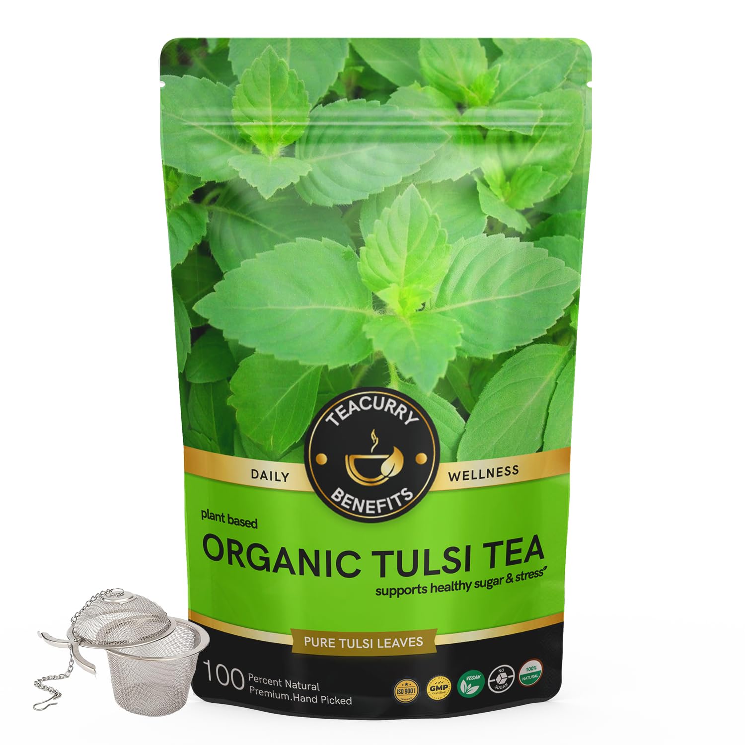 Teacurry Organic Tulsi Tea is a handpicked collection of Krishna Tulsi Rama Tulsi and Vana Tulsi from farmlands in Punjab. Tulsi leaves a Vedic herb are a health restoration in all seasons. Handpicked from Indiaâs finest gardens and created by our highly skilled master blenders over thousands of cups it is 100% Natural super delicious and very effective. Developed with extensive research this tea packs the 5000-year-old wisdom of Ayurveda and utilizes a variety of tulsi leaves to provide 4 very specific benefits - prevents disorders beats regulates sugar and improves oral health. Tulsi Tea has an abundance of nutrients and antiand the combination naturally supports the and systems and promotes ification. Enjoy this Tulsi Tea which consists of a balanced blend of a handpicked premium fresh variety of Tulsi leaves. Our Tulsi Tea promotes a feeling of fullness and suppresses appetite while giving your body extreme nutrition with vitamins and anti. Clinical studies have shown that all three varieties of Tulsi leave promote healthy which is vital to . Teacurry Tulsi Tea has an abundance of antiwhich eliminates damaging free radicin the body. Teacurry Organic Tulsi Tea is antiseptic. It helps with intestinal vomiting and Teacurry tulsi tea also benefits health. Teacurry Tulsi tea lowers increases and prevents skin s. Tulsi tea bags and Tulsi tea loose leaves help regulate . Tea of tulsi tea has a light yellow to yellow-golden color with an intense floral scent depending on the amount of brewing. The aroma of Teacurry dried tulsi leaves can be compared to fresh cloves while the taste is more earthy. Tulsi tea lowers both systolic and diastolic . Drinking Teacurry Organic Tulsi Tea for 4-6 weeks helps regulate. Teacurry Organic Tulsi Te