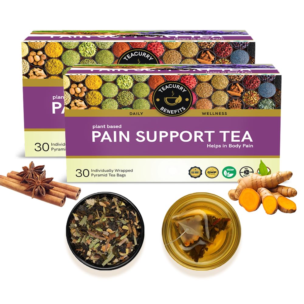 Teacurry Pain Support Tea (2 month Pack 60 Tea Bags) - Helps with Pain Headaches & Joint Support