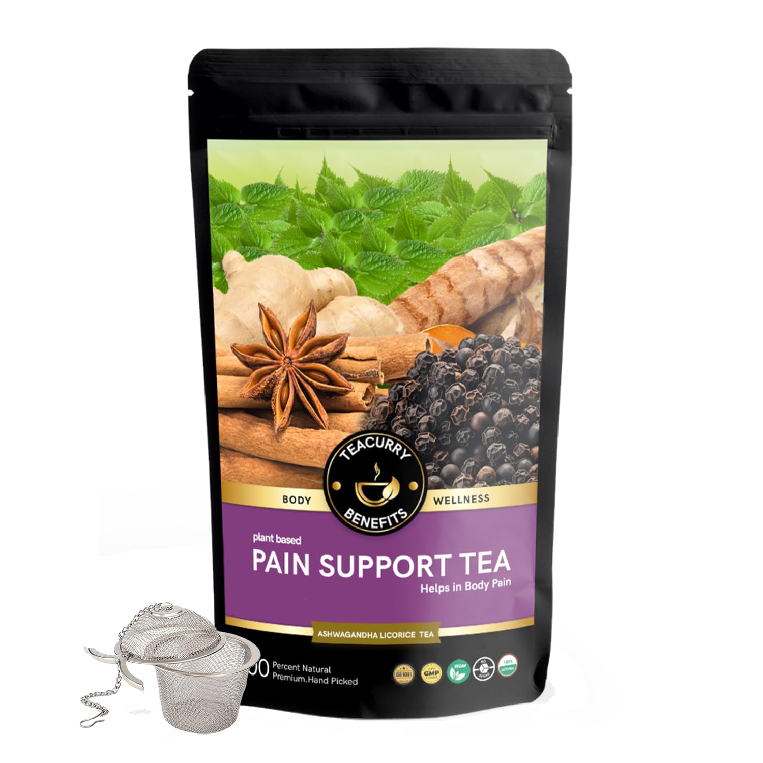 Teacurry Pain Support Tea (200 Gram Loose with Infuser) - Helps with Pain Headaches & Joint Support