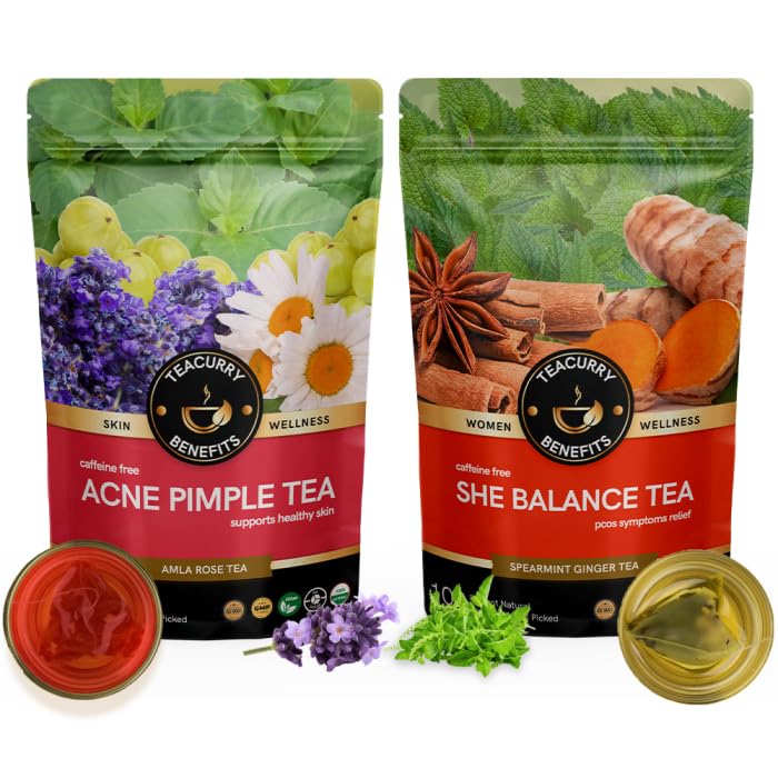 TEACURRY PCOS PCOD Acne Pimple Tea (2 Months Pack 200 Grams Loose) - Helps with Hormone Period and Weight - Herbal Tea for Pcos/pcod - She Balance Tea