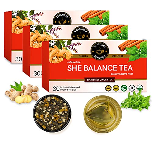 TEACURRY PCOS PCOD Tea Box (3 Month Pack 90 Tea Bags) - Helps with Hormone Period and Weight - Pcos Tea - She Balance Tea (180 Grams)