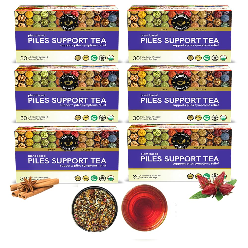 TEACURRY Piles Support tea (180 Tea Bags, 6 Month Pack) - Helps with Piles, Gut Health, Digestion | Relief from Constipation | Natural Plant Blend with Bibhitaki,Haritaki, Guggul