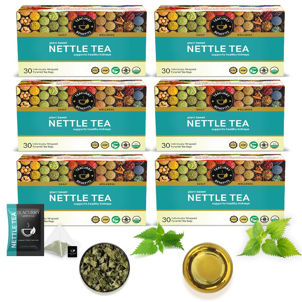 TEACURRY Pure Nettle Leaf Tea Box - 180 Pyramid Tea Bags | 100% Natural Nettle Leaf Tea | Blood Pressure and ease Joint Pain | Pure Nettle Leaf Tea Helps in Detoxify