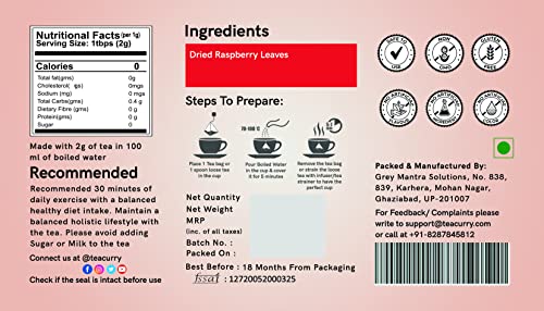 TEACURRY Raspberry Bags - (4 Month Pack | 120 Tea Bags) - Helps With Women Health - Raspberry Leaf Tea Green Tea 200 Gram