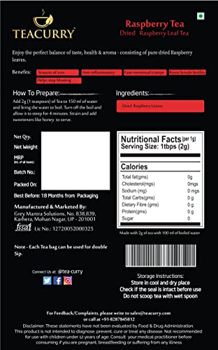 HomeGroceryBeveragesTeaTEACURRY Raspberry Tea (500 Grams 1000 Cups)- Helps with Period health Fertility Labour & Child birth - Raspberry From Washington