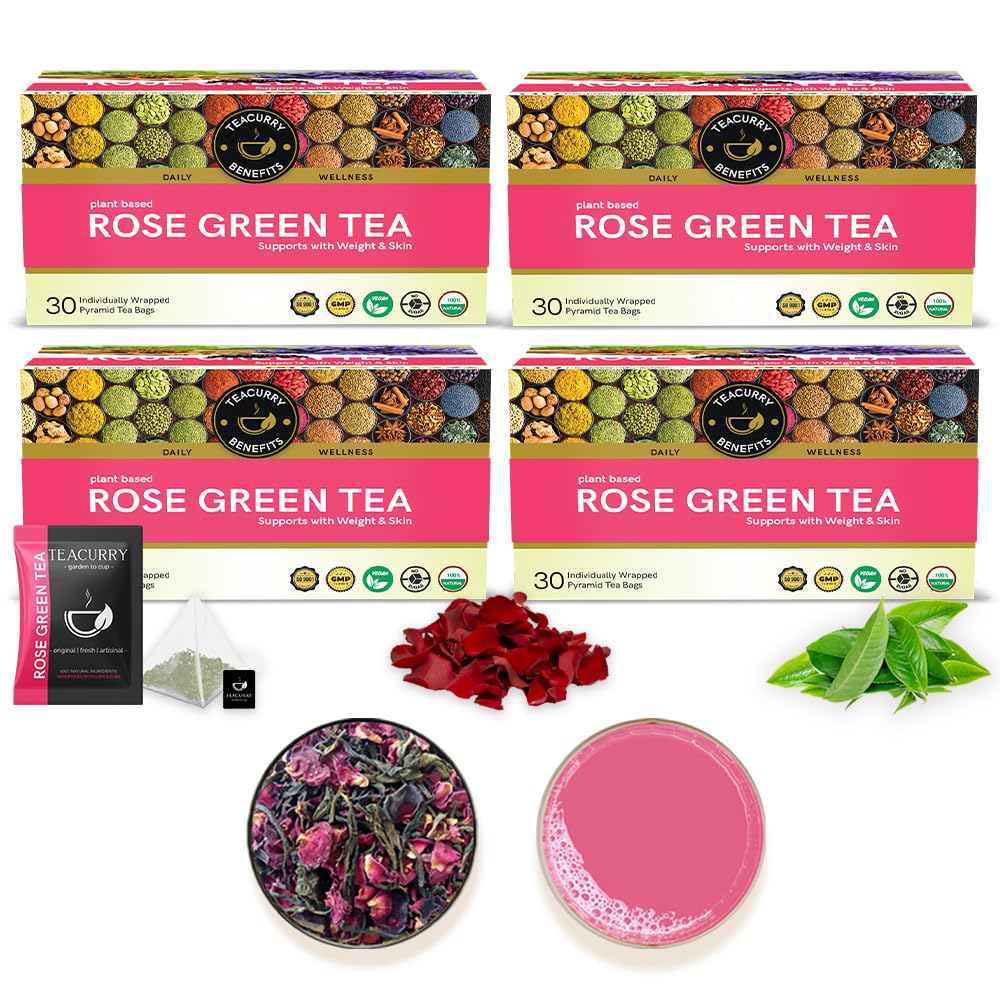 TEACURRY Rose Green Tea (4 Months Pack, 120 Tea Bags) - Support Weight loss, Boosts Digestion, Relieves Anxiety, Increases Skin Glow | Nature stress Buster Rose Green Tea