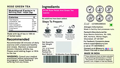 TEACURRY Rose Green Tea Loose | 50 Grams / 25 Cups - Helps Lose Weight Boosts Digestion Relieves Anxiety Increases Skin Glow | Green Tea with Rose Tea Leaves