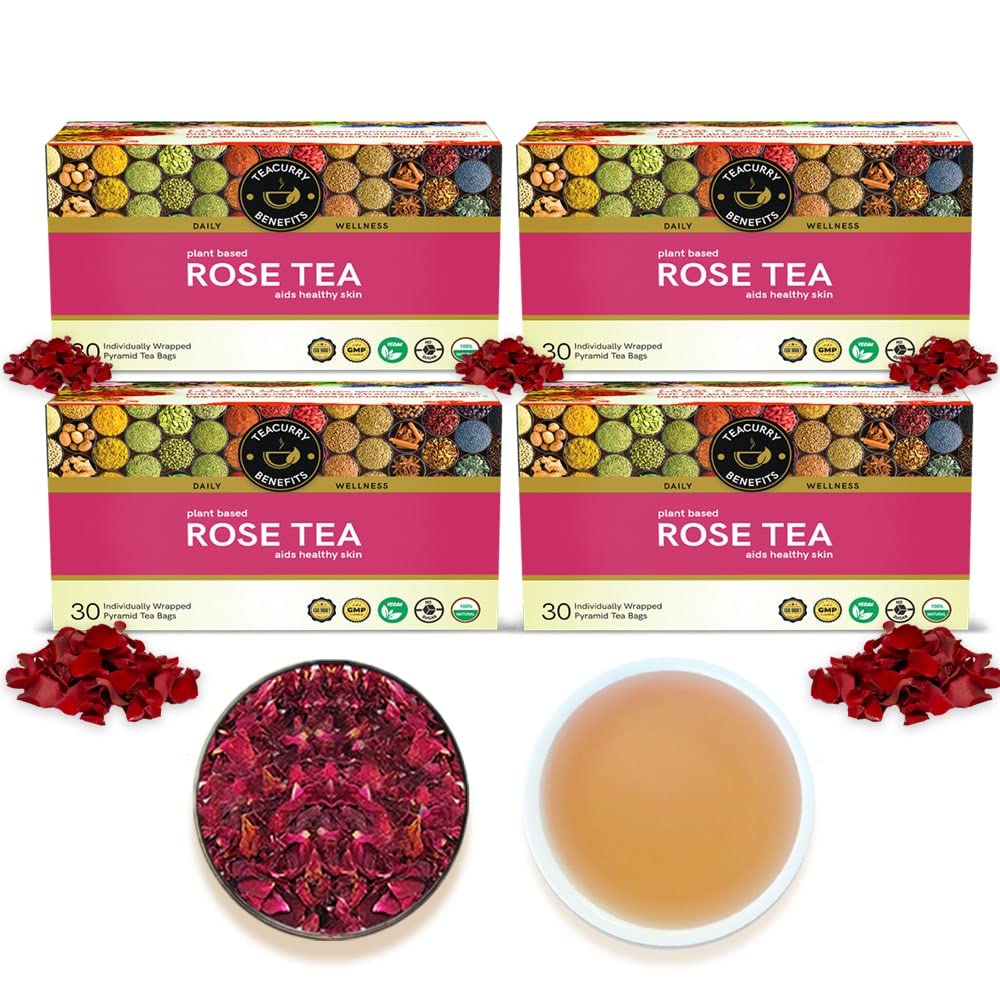 TEACURRY Rose Petal Tea (120 Tea Bags, 4 Months Pack) - Helps Lose Weight, Boosts Digestion, Relieves Anxiety, Increases Skin Glow - Rose Tea Petals - Petals Tea Bag Detox