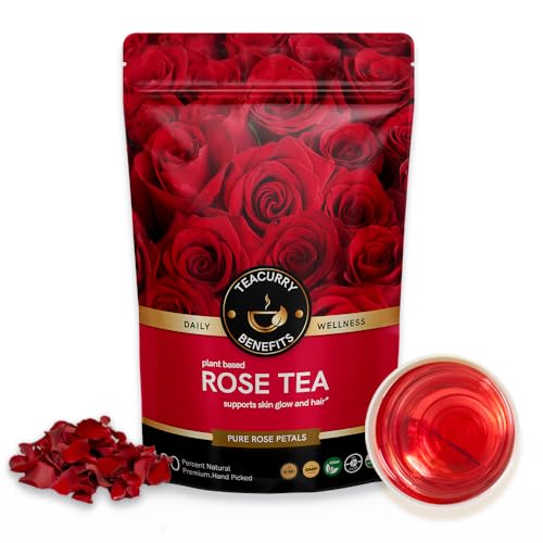 Teacurry Rose Petals Tea: A delightful flower tea crafted from pure Damask rose petals sourced from Maharashtra. Handpicked and carefully inspected our tea is free from gluten and caffeine suitable for all ages. Packed with 5000-year-old Ayurvedic wisdom it offers specific benefits: supports wellness Available as tea bags or loose leaf our tea is dried naturally with no added ingredients. Enjoy its mild sweet flavor anytime. Just 2 grams daily post-meal helps in well-being.