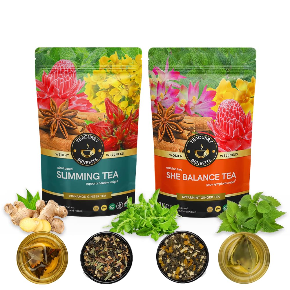 Green tea leaves Hibiscus Sabdariffa mighty ginger Cassia Cinnamon Krishna Tulsi Foenum Graecum Fenugreek Florence fennel and Mentha Spicata Spearmint. On the other hand PCOS PCOD tea consists of a powerful blend of Turmeric Curcumin Longa Himalayan Nettl