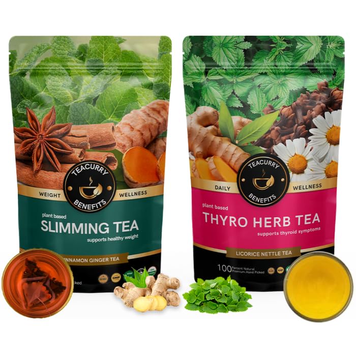 TEACURRY Thyroid Slimming Tea Combo (1 Month Pack, 100x2 Grams Loose) - Helps with Thyroid Hormones (TSH, T3, T4) & Weight Loss