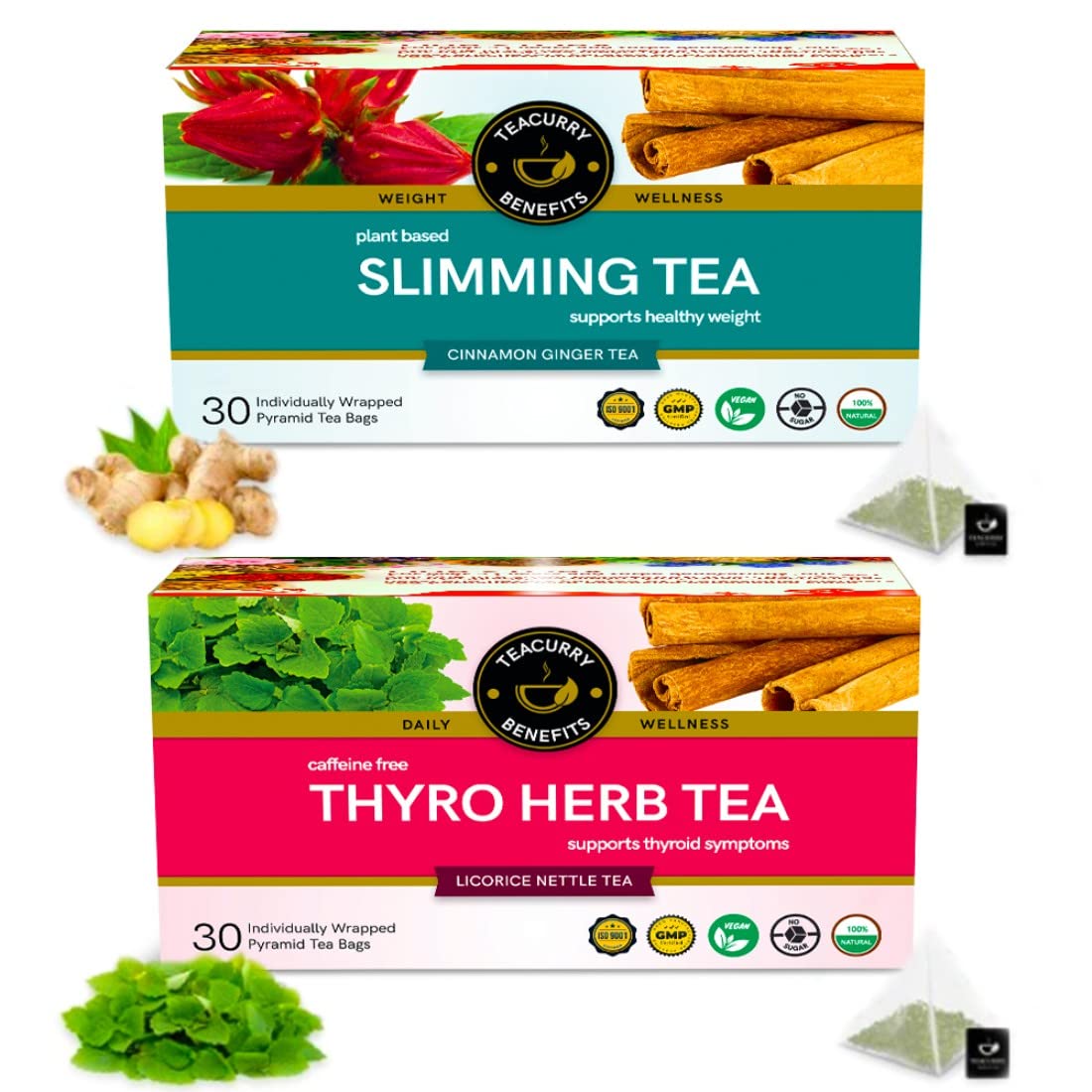 TEACURRY Thyroid Slimming Turmeric Tea Combo (1 Month Pack, 30X2 Tea Bags)-Helps With Thyroid Hormones (Tsh, T3, T4) & Weight Loss,100 Grams
