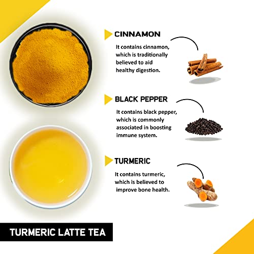 Teacurry Spiced Turmeric Latte is a perfect balance of taste health and aroma - consisting of Turmeric in form of Curcumin Longa sourced from Andhra Pradesh Indian Ginger from Orissa Cinnamon in form of Cassia cinnamon from Meghalaya Indian Black Pepper in form of the Panniyur-3 sourced from Kerala and Cardamom sourced from the Idukki district in Kerala. Teacurry Spiced Turmeric Latte in form of Turmeric Tea Bags and Turmeric Latte mix has a pungent sweet taste with a distinct turmeric flavour. This turmeric tea with cinnamon ginger black pepper and cardamom in the form of golden milk powder - is the perfect Turmeric Tea for weight loss and further lacks tartness facilitating a sweet sensation to the tongue. Our Golden Milk Haldi is a perfect blend of desi detox tea to cleanse the digestive system boost immunity and relieve oxidative stress. Moreover this spiced Turmeric Latte powder has a strong spicy-sweet fragrance. Bright yellow-orange spice Turmeric has been used for its medicinal antioxidant and anti-inflammatory properties for thousands of years. Turmeric helps boost immunity reduce the risk of asthma lower cholesterol and fight uveitis. Obtained from the inner barks of Cinnamomum tree Cinnamon is used as an aromatic condiment and a powerful medicinal spice. It is loaded with antioxidants and anti-inflammatory properties and it further reduces the risk of heart diseases lowers blood sugar levels and fights bacterial and fungal infections. Ginger further reduces the risk of nausea and eases pain in case of Menstrual cramps and in osteoarthritis. Indian Cardamom has been used for ages to fight against digestive problems help with bad breath prevent cavities improve breathing and protect the liver. Teacurry black pepper has high antioxidant content and is full of anti-inflammatory properties. It benefits your brain improves blood sugar levels lowers cholesterol and promotes gut health.