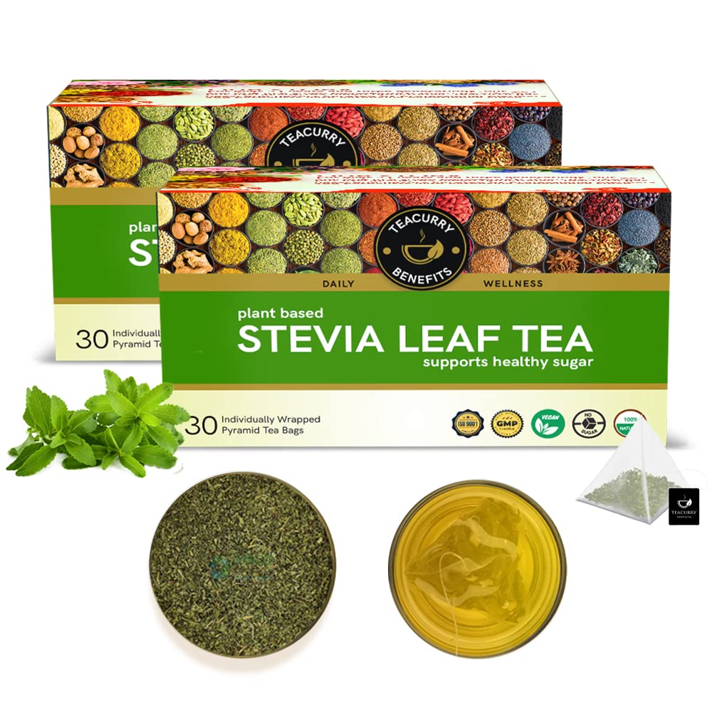 TEACURRY Stevia Tea (2 Month Pack, 60 Tea Bags) - Helps with blood sugar levels, cholesterol - 100% Natural Sweetener - Sugar free