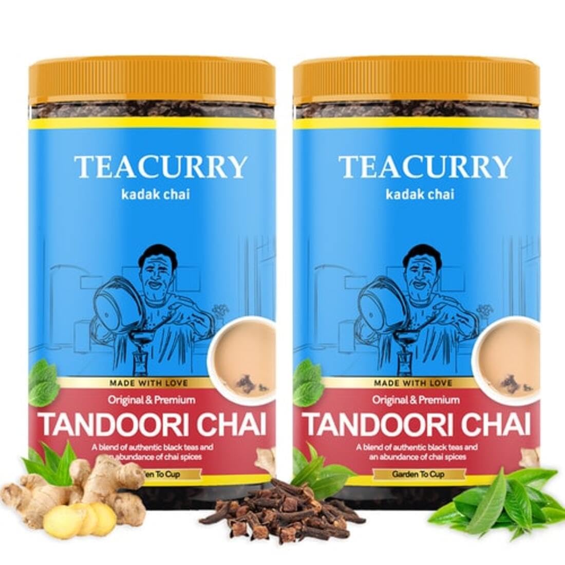• World of Flavours - Teacurry Tandoori Chai has a soft muted sun-soaked golden brown color with an intense leafy sweet smell with earthy notes. It smells and tasts like the kulhad chai available in a tandoor tea store. The bold spiciness of ginger and the