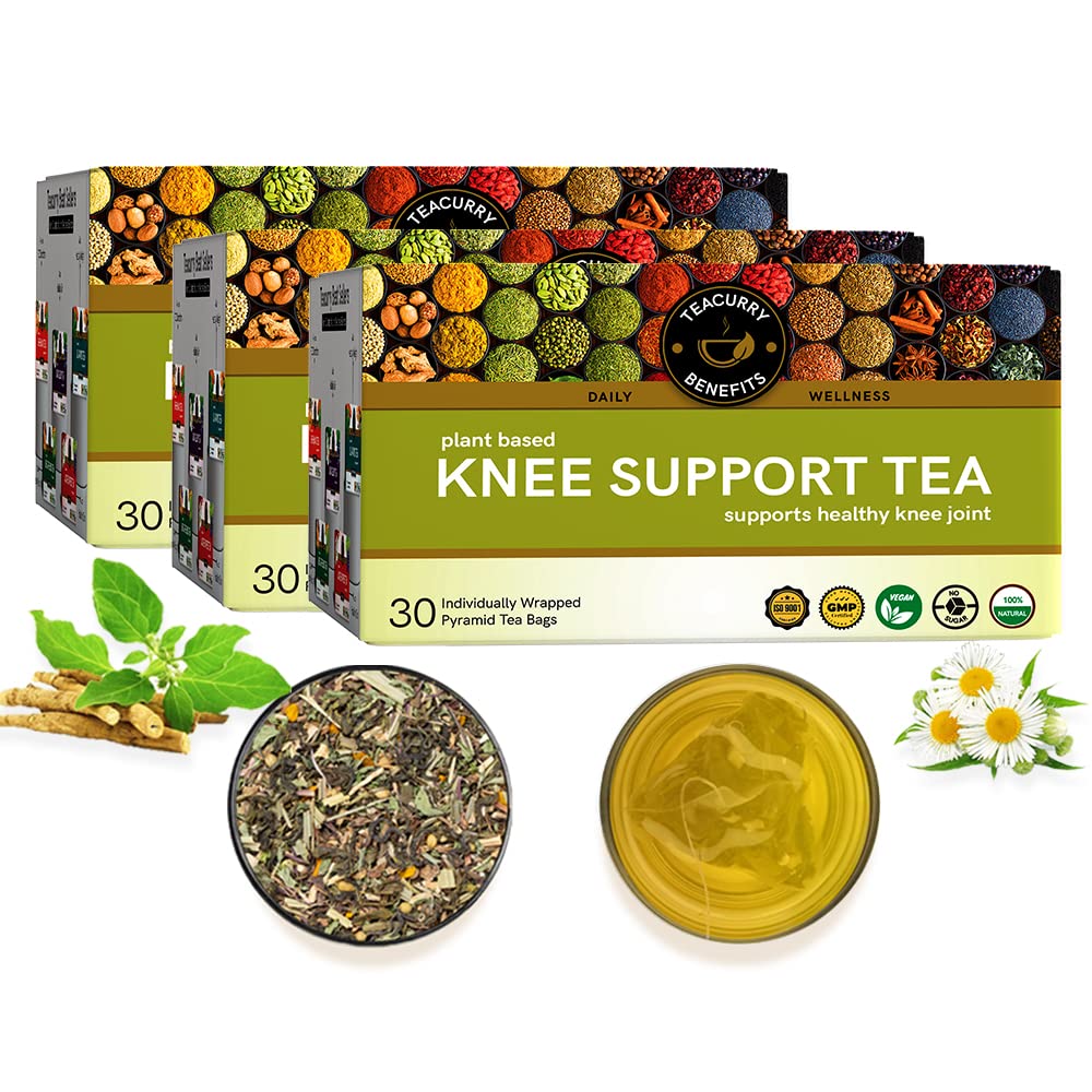 TEACURRY Tea For Knee Pain (3 Months Pack, 90 Tea Bags) - Helps with Knee Pain, Strong Bones - Knee Support for Men and Women