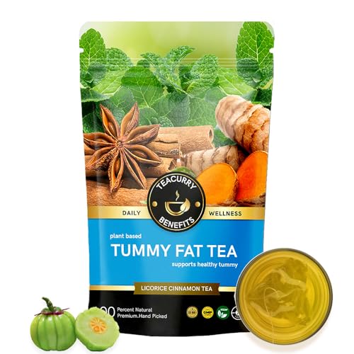 Teacurry Tummy Fat Tea is a natural herbal tea that targets tummy fat and metabolism and supports with weight management. It reduces water weight curbs sugar cravings and focuses on Slimming the tummy area.