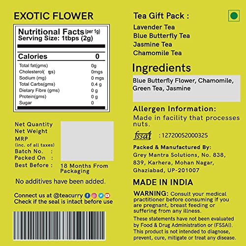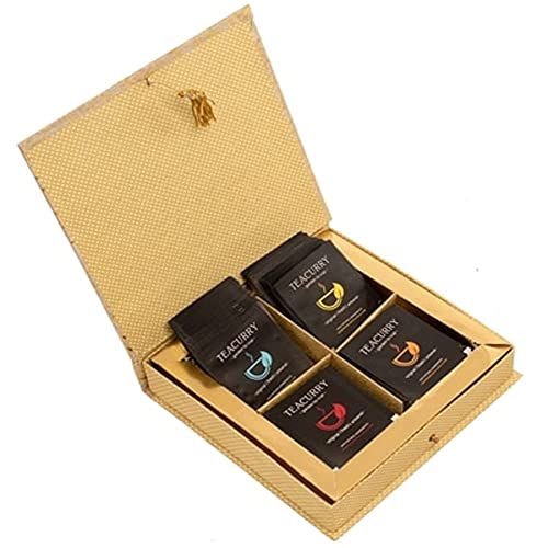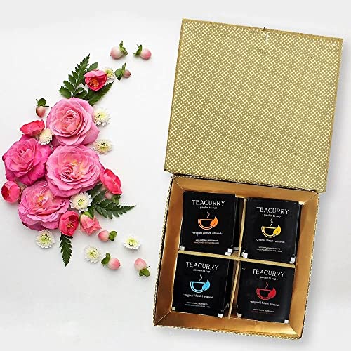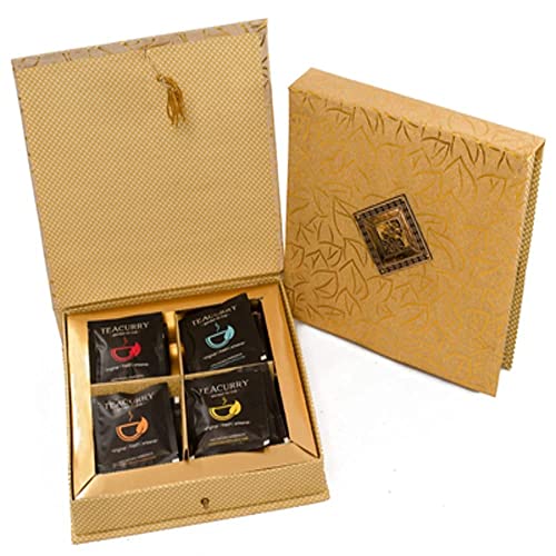 Teacurry Tea Gift Box (Blue Flower Chamomile Jasmine Lavender) - Gift for Festival Birthday Anniversary Diwali Corporate Valentin (Golden -Tea Bags)