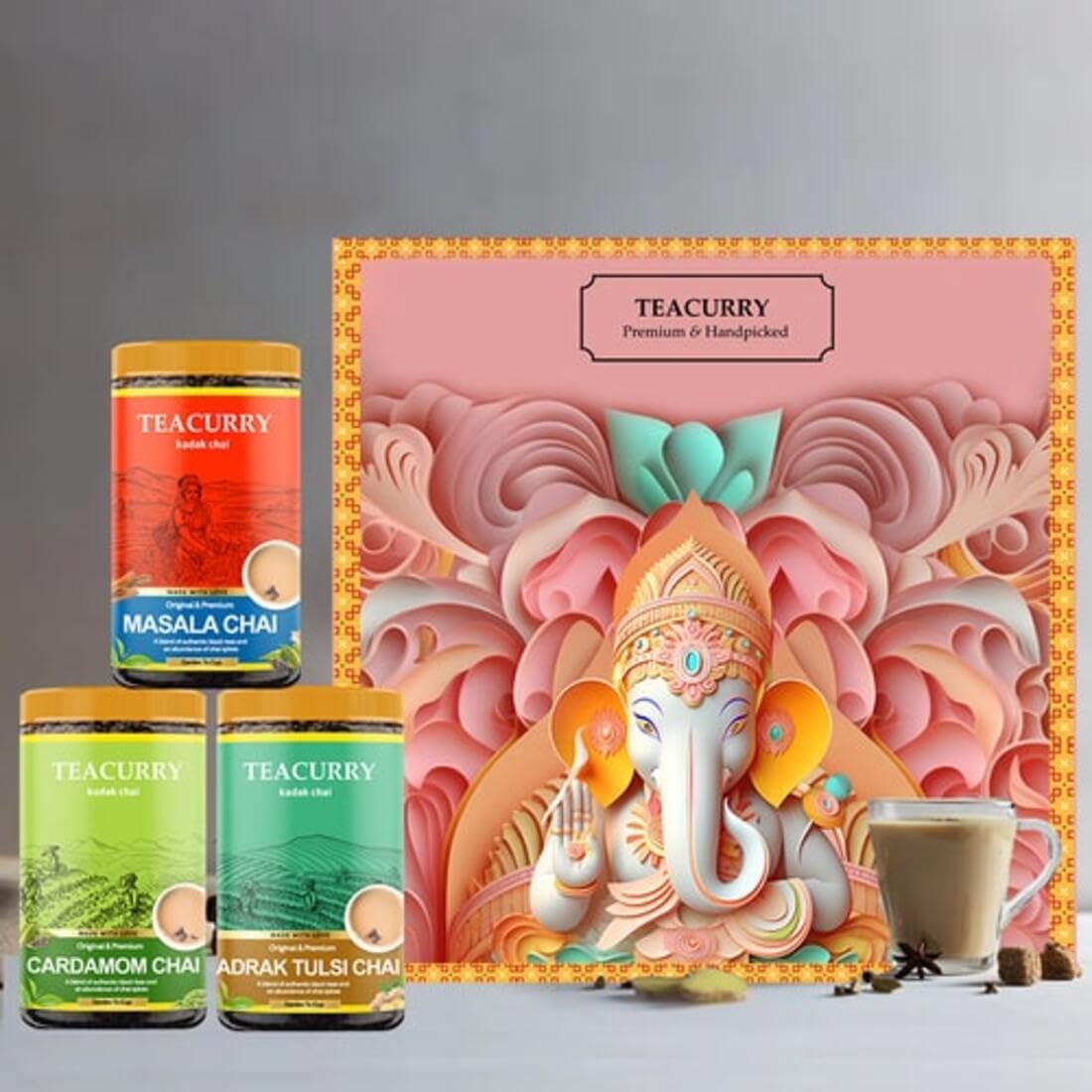 Teacurry Tea Gift Box (Mighty Ganesha) - Cardamom Chai Masala Chai Adrak Tulsi Chai - Gift for Festival Birthday Anniversary Thank You Corporate Valentine