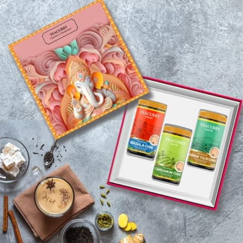 HomeGroceryBeveragesTeaTeacurry Tea Gift Box (Mighty Ganesha) - Cardamom Chai Masala Chai Adrak Tulsi Chai - Gift for Festival Birthday Anniversary Thank You Corporate Valentine