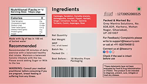 100% Natural Ingredients - The sole purpose of this Thigh tea is to burn those extra fats in and around your Thigh. Enjoy this delicious balance of taste health and aroma which help you lose fat and boost metabolism. Teacurry Thigh Fat Tea is a 100% natur