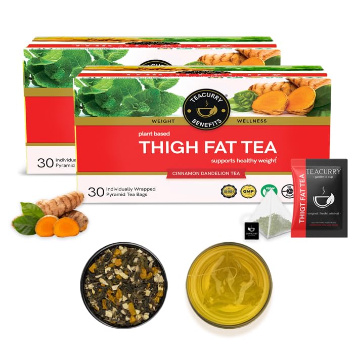 • Delicious Tea for Thigh Fat - Teacurry Thigh fat tea consists of a powerful Ayurvedic tea blend of Ginger Fennel Garcinia Cambogia Dandelion Camellia sinensis Amalaki Pippali Haritaki Turmeric Cumin Asparagus Rosemary and Cardamom. These provide the per