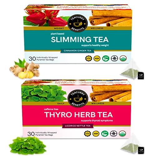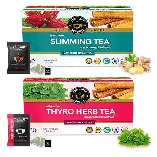 TEACURRY Thyroid Slimming Tea Combo (2 Month Pack 60x2 Tea Bags) - Helps with Thyroid Hormones (TSH T3 T4) & Weight Loss