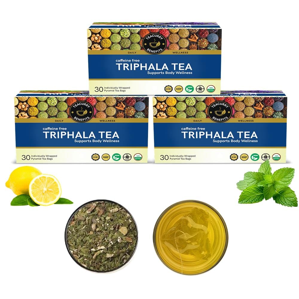 Teacurry Triphala Herbal Tea (3 Month Pack | 90 Tea Bags) - Helps with Digestive Support and Clear Skin | Power of Triphala for Glowing Skin & Shiny Hair