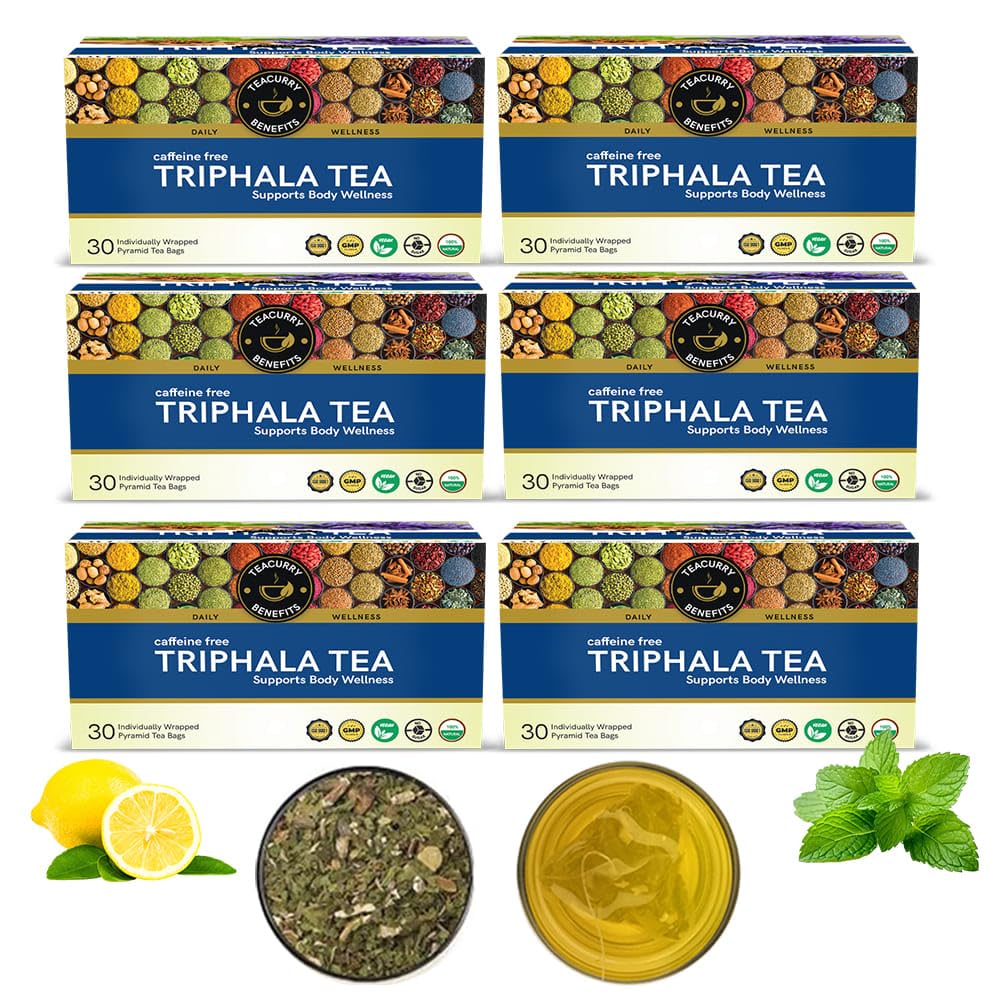 Teacurry Triphala Herbal Tea (6 Month Pack | 180 Tea Bags) - Helps with Digestive Support and Clear Skin | Power of Triphala for Glowing Skin & Shiny Hair