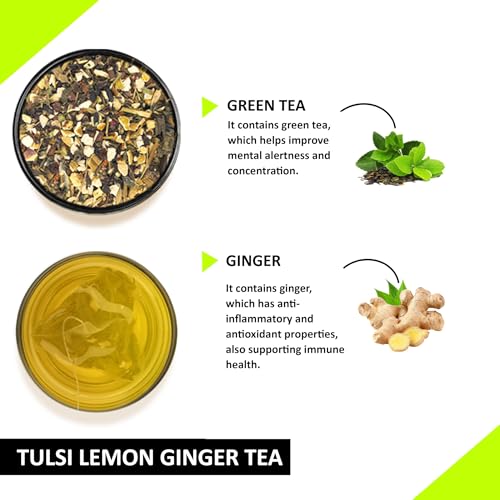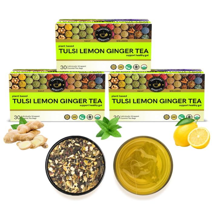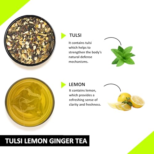 Teacurry Tulsi Lemon Ginger Tea (90 Teabags) - Helps to Improve Strength and Skin Wellness | 100% Natural