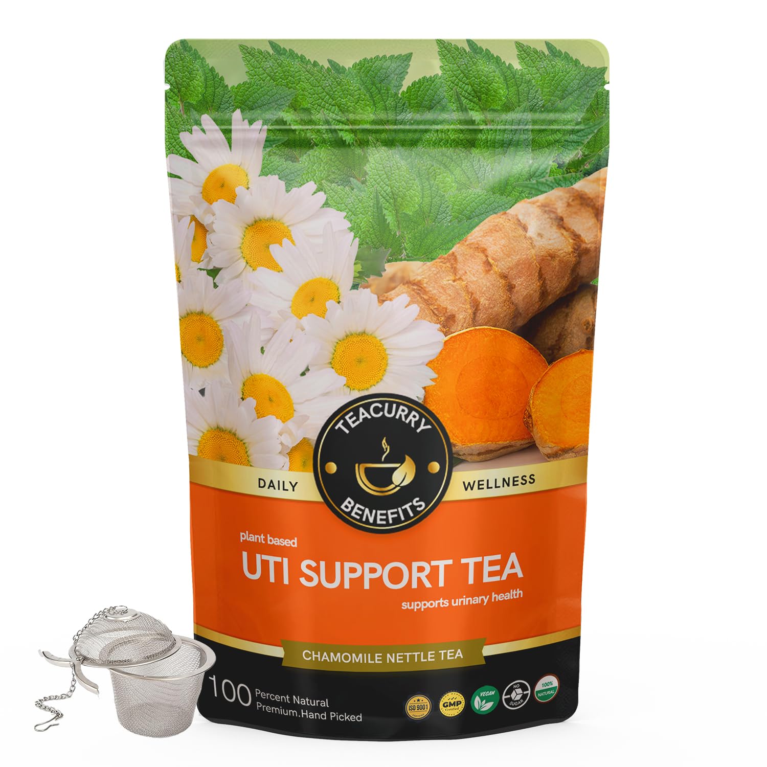 • 100% Natural Ingredients Teacurry Herbal UTI Support Tea consists of a powerful Ayurvedic tea blend of Dried chamomile flowers sourced from Himachal Pradesh in form of Matricaria Chamomilla Peppermint from Haryana Asparagus sarmentosa Linn variety of Sha
