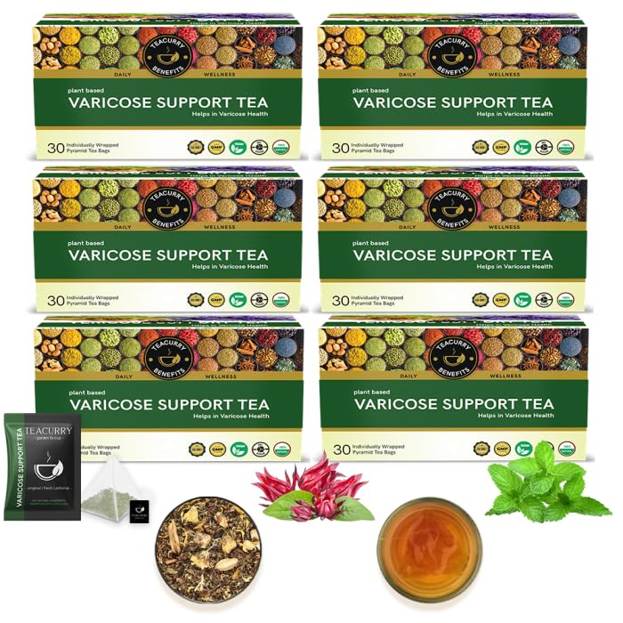 HomeGroceryBeveragesTeaTeacurry Varicose Support Tea - (180 Tea Bags 6 Month Pack) - Helps in Varicose Veins Relief | Blue Purple Bulges known as Vericose Veins