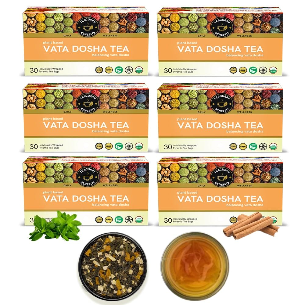 TEACURRY Vata Dosha Tea (6 Month Pack, 180 Tea Bags) - Helps with Vata, Relaxation, calming & Digestion | 100% Natural Ingredient - licorice, ginger, cardamom, cinnamon