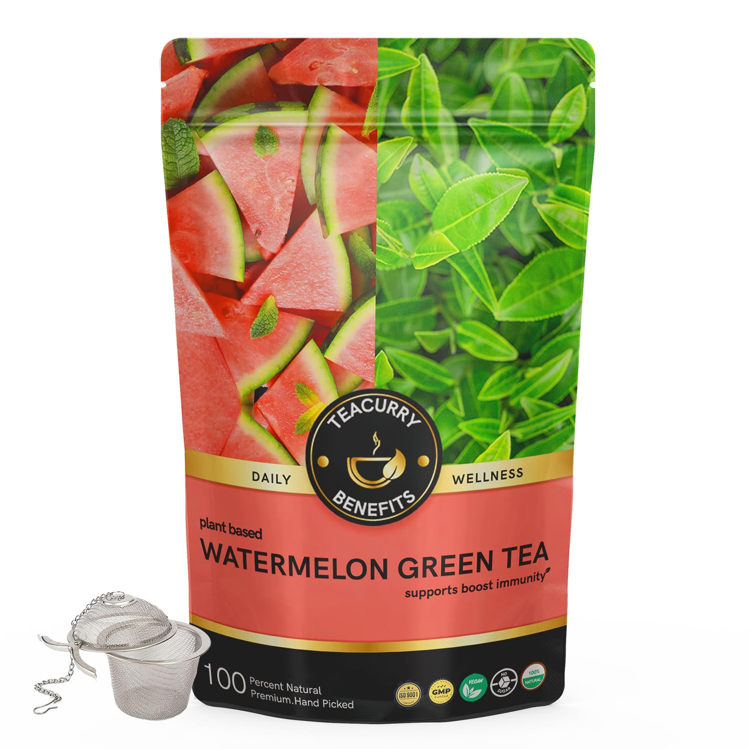 TEACURRY Watermelon Green Tea (100 Gram Loose + Infuser) - Natural Source of Vitamins and Antioxidants | Sweet Subte Flavor of Watermelon | 100% Natural
