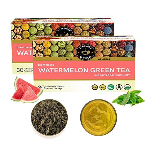 TEACURRY Watermelon Green Tea (2 Month Pack 60 Tea Bags) - Natural Source of Vitamins and Antioxidants | Sweet Subte Flavor of Watermelon | 100% Natural