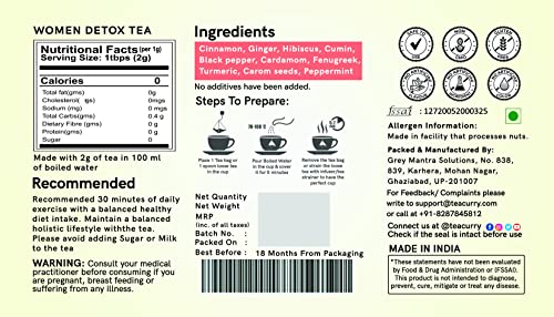 TEACURRY Women Detox Tea (200 Grams Loose Tea) - Weight Loss Liver Detox and Intestinal Health | Everyday Detox Tea Loose Slimming Detox Tea Cleanse and Indian Detox Tea Herbal