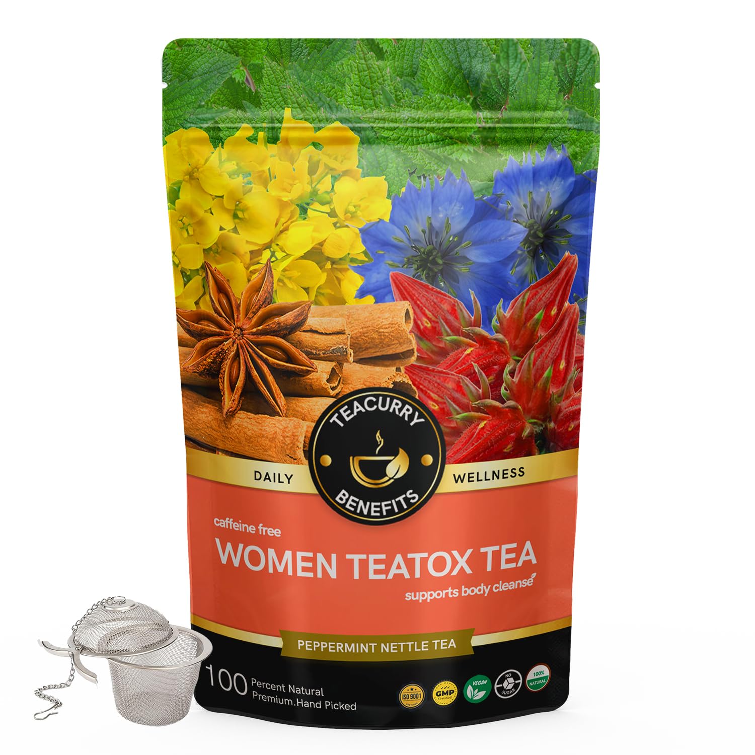 TEACURRY Women Detox Tea - 200 Gms Loose Tea + Infuser | Liver Detox and Intestinal Health | Slimming and Cleanse, Indian Detox Tea Herbal | 100% Natural Tea for Women Detox
