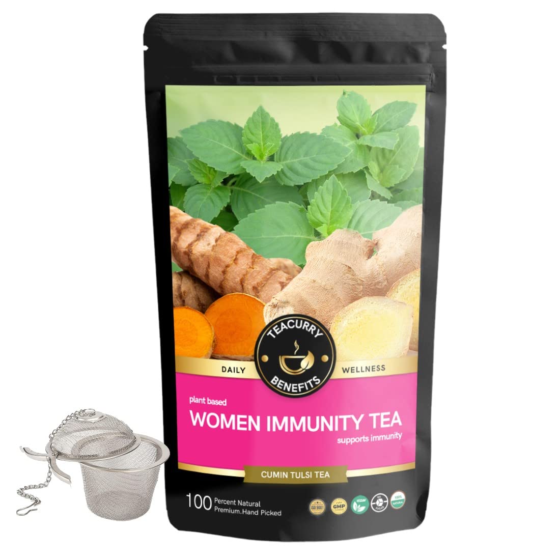 TEACURRY Women Immunity Tea - 200 Gms Loose Tea + Infuser | Helps with Immunity, Regeneration | Herbal Immunity Booster Tea, Immunity Green Tea | 100% Natural Herbal Tea
