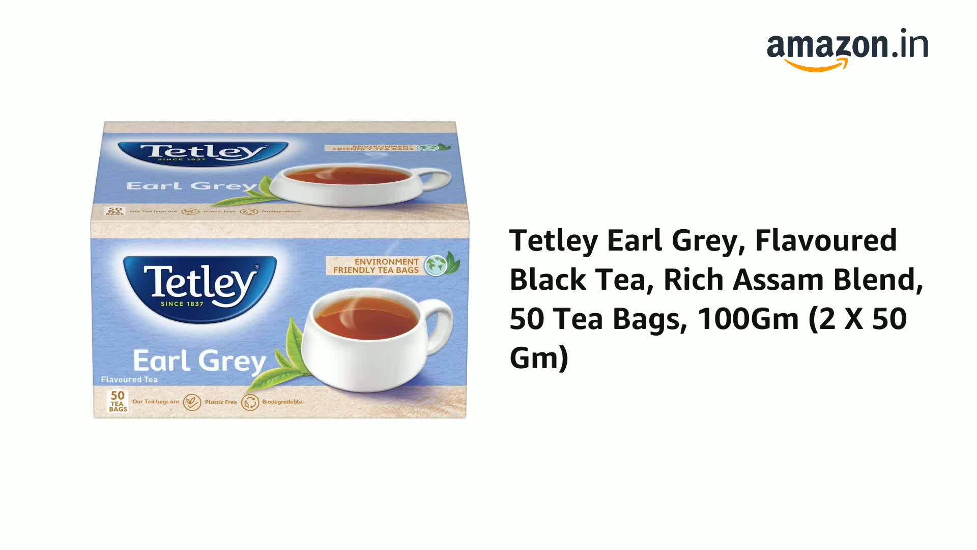 Tetley Earl Grey, Flavoured Black Tea, Rich Assam Blend, 50 Tea Bags, 100Gm (2 X 50 Gm)