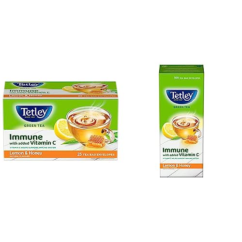 Tetley Green Tea, Lemon and Honey, 25 Tea Bags and Tetley Green Tea, Lemon and Honey, 100 Tea Bags