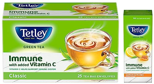 Tetley Green Tea, Pure Original, 25 Tea Bags and Tetley Green Tea, Lemon and Honey, 100 Tea Bags