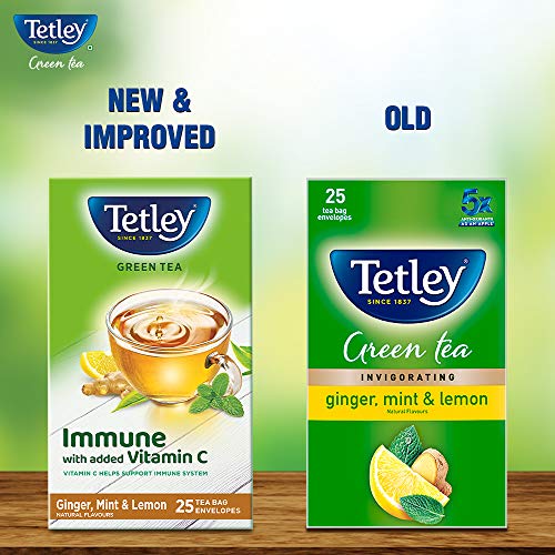 Tetley Long Leaf Original | All-natural Green Tea with Anti-Oxidants | Green Tea | 500gStart afresh with Tetley! To stay refreshed all day sip the refreshing Tetley Long Leaf Green Tea. Being an excellent source of antioxidants Tetley Green Tea has various beneficial effects on health such as it helps you feel relaxed by hydrating your body and flushes out all the toxins from your body. The finest and long tea leaves are blended for a smooth and soft taste with an all-natural green tea flavor. You can now enjoy freshness whenever and wherever you want such as after breakfast before exercise or before bedtime. USAGE INSTRUCTIONS: Add just ½ tbsp. of Green Tea Leaves to boiling water. Brew the tea for 2 minutes. Add honey if desired & enjoy the perfect green tea!Tetley | Ginger Mint & Lemon Flavored Green Tea | Immune with Added Vitamin C | 25 Tea BagsTetley Green Tea is undoubtedly an excellent source of anti-oxidants. All the goodness now comes with immunity power of added Vitamin C with new Tetley Green Tea Immune Range. While anti-oxidants help cleanse your body from within Vitamin C helps support your bodyâs immune system. This green tea with no calories provides many more benefits like boosting fat metabolism helping to stay hydrated and helping to feel light and active. Driven by sustainability these green tea bags are 100% plastic-free and staple-free. The flavoured variants contain 100% natural flavors. # A cup of green tea contains as much as 5 times (5X) the anti-oxidants in an apple. (âUSDA Database for the Flavonoid Content of Selected Foodsâ Rel 3.3 March 2018)