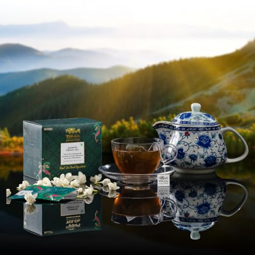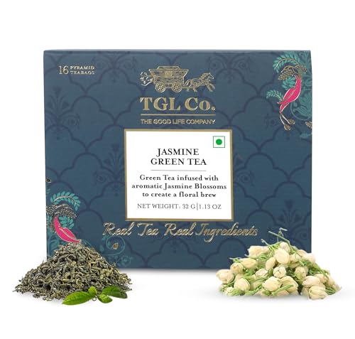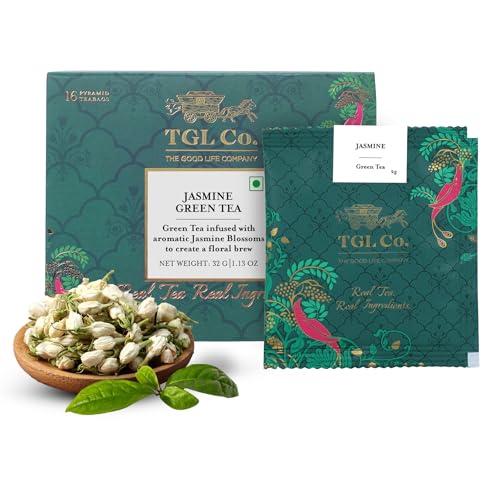 TGL Jasmine Tea Bags, 16 Tea Bags with Green Tea & Jasmine Blossom Petals, Green Tea Bags for Sliming