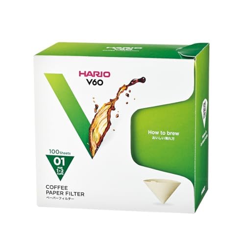 V60 Paper Filter 01 M 100 Sheets Cone shaped brown paper filter for Hario's V60 size 01 pour-over brewers. These paper filters produce a clean flavorful sediment-free cup. Hario's paper filters make for convenient brewing and cleanup.