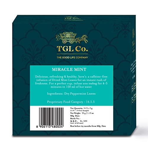 TGL Co. The Good Life Company Miracle Mint Tisane Herbal Infusion Herbal Tea (15 Tea Bags + 1 Exotic Sample),32 Grams