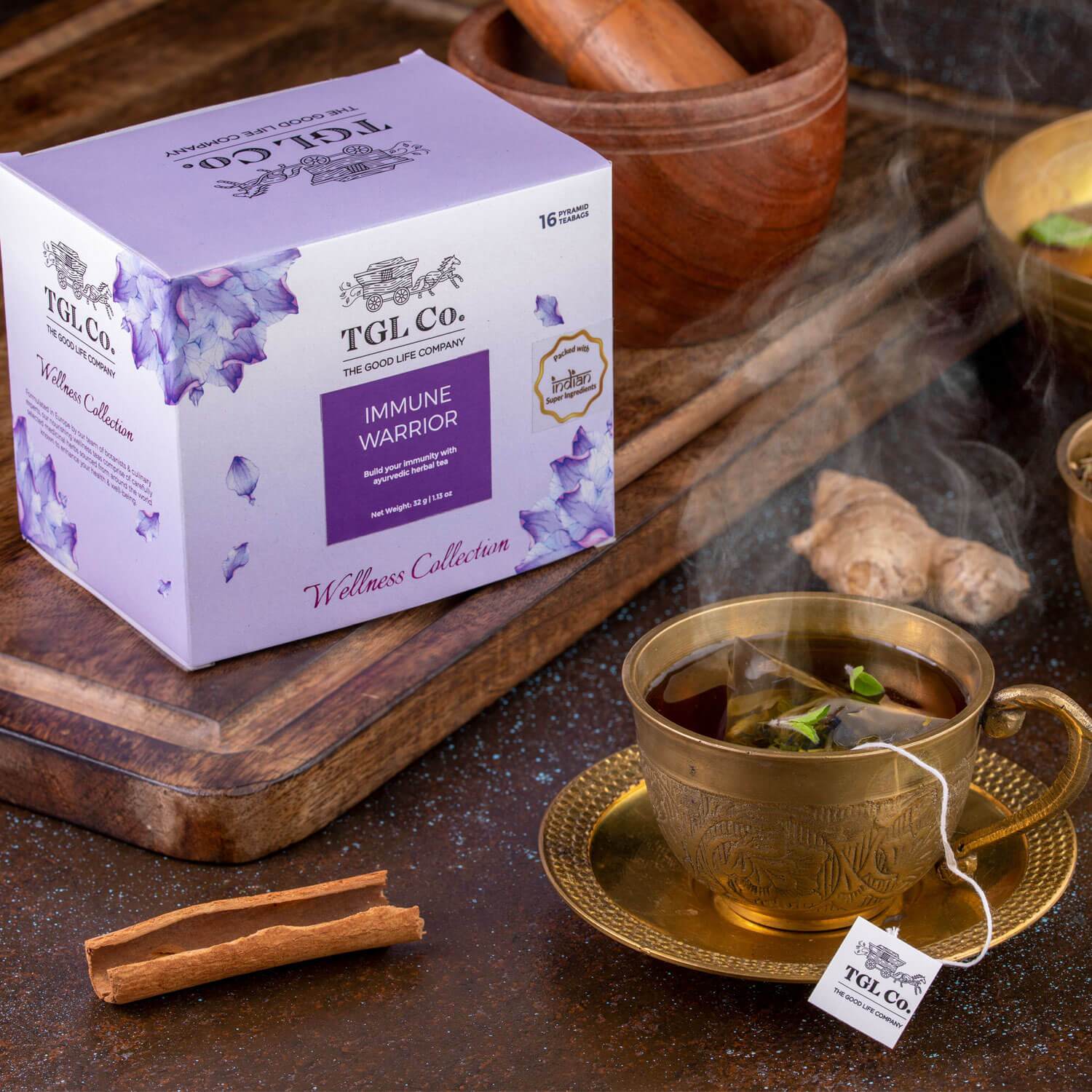 Aroma - Herbaceous and slightly pungent nuances of Ayurvedic medicinal herbs & spicesAppearance -  Golden BrownTasting Notes -   Vegetal, Pungent Caffeine - Medium Best Consumed - Throughout the dayTaste - Pungent, sharp notes of Ginger, Tulsi, Cinnamon cut through the tart flavours of Amla & Ashwagandha. Fennel & Mint subtly offer a sweet finish to the herbal infusion. Shelf Life: 24 Months