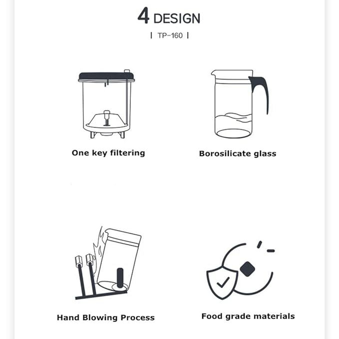 If you are someone who consumes tea, you would know the value of tea freshly brewed making it retain its taste and characteristics. It is very important therefore, to use a tea brewing pot. TGL Co. realizes it and has manufactured a tea brewing pot that comes with an inbuilt infuser. The infuser is large enough for you to put your tea leaves in that for the leaves to get slowly brewed to perfection. This tea pot has a lid in the top to tightly lock the freshness of the tea and will also retain the temperature of the tea for long time. To sieve the tea, press the button on the cover and let tea be filtered and flow out into the outer pot. How to use Scoop desired quantity of tea leaves in the upper infuser chamber of the Press Art Tea Maker. Place the infuser chamber within the pot and add hot water over the tea leaves. Do not fill the chamber to the brim. Close the lid and let the tea leaves steep as per the prescribed time. When infused, press the button on the top of the lid and let tea be filtered and flow out into the bottom pot. Pour freshly made tea into your mug and enjoy! Net Quantity: 1 N
