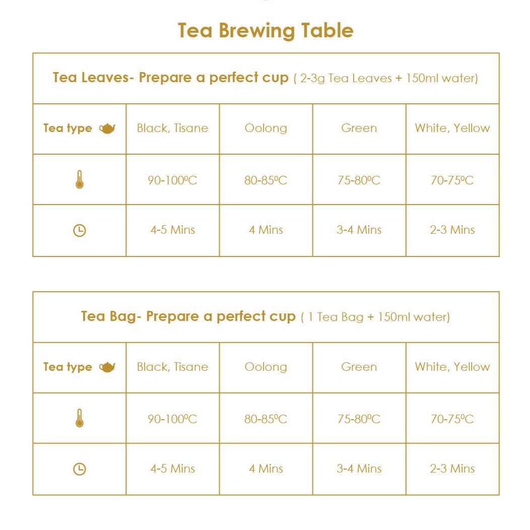 • Allow 1 tsp of tea for each 150ml of water.